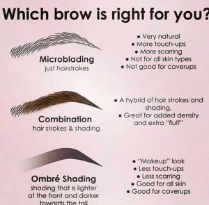 The techniques are done differently and give different results. Microblading means manually creating micro incisions on the surface of the skin and filling them with colored pigment. Every hair is created separately, resulting in natural-looking brows. The process is perfect for people with dry skin, while those who have oily skin should opt for the ombre look. It’s also ideal for those who want more solid brows or want an entirely new look. The ombre powder technique resembles brow tattooing, since it involves the application of thousands of tiny dots of pigment inserted into the skin. However, unlike traditional tattooing, this procedure is done on the epidermis layer of the skin, therefore making it less permanent. Result is solid looking brows that look fuller and powdered, yet still very defined. It is called ombre because the tail of the brow is always darker than the head. Also, if you choose this procedure, your eyebrows will always look as if you are wearing makeup.